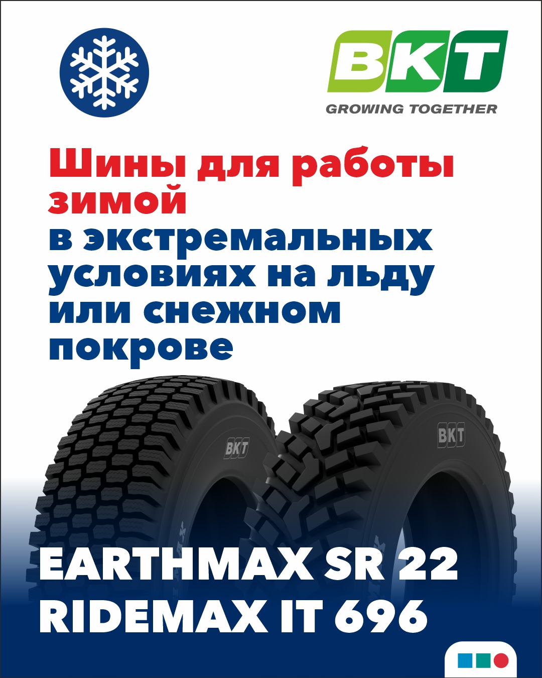 BKT EARTHMAX SR 22 (G-2/L-2) - это радиальные шины с цельным металлокордом, которые изготовлены специально для автогрейдеров и погрузчиков, работающих зимой в экстремальных условиях на льду или в снежном покрове. Операторы высоко оценивают как тяговые характеристики, так и стойкость к блеску, что позволило обеспечить значительное использование протектора с основным ненаправленным рисунком.